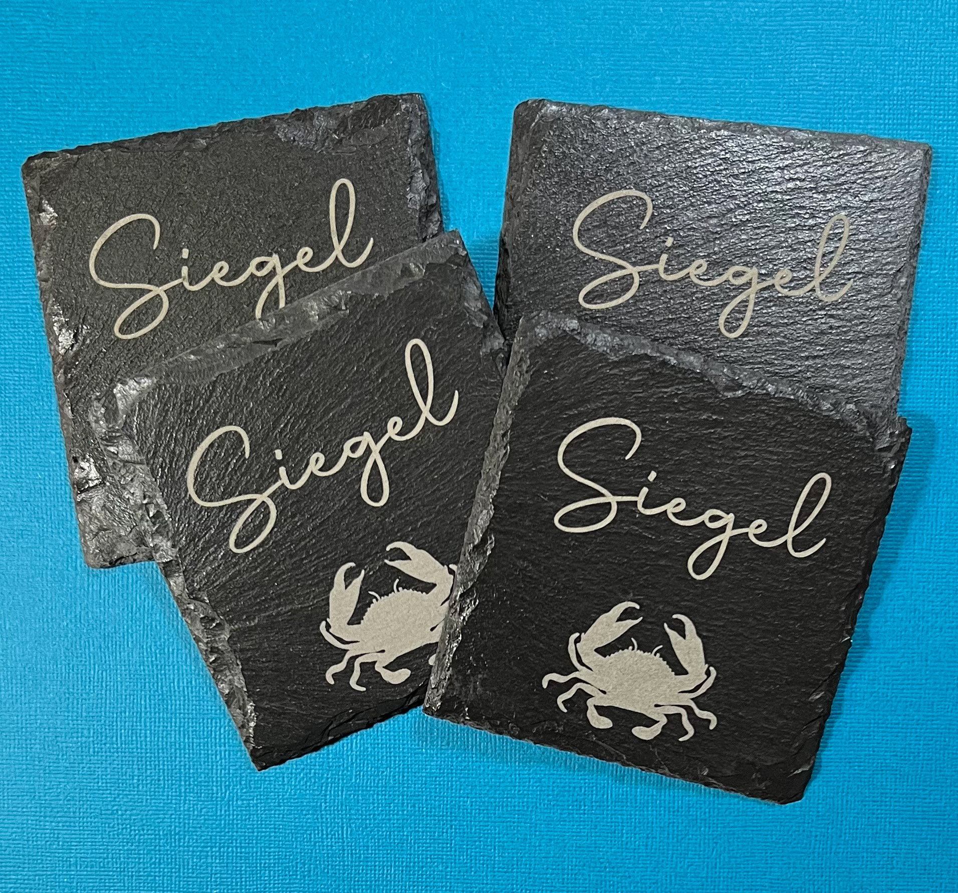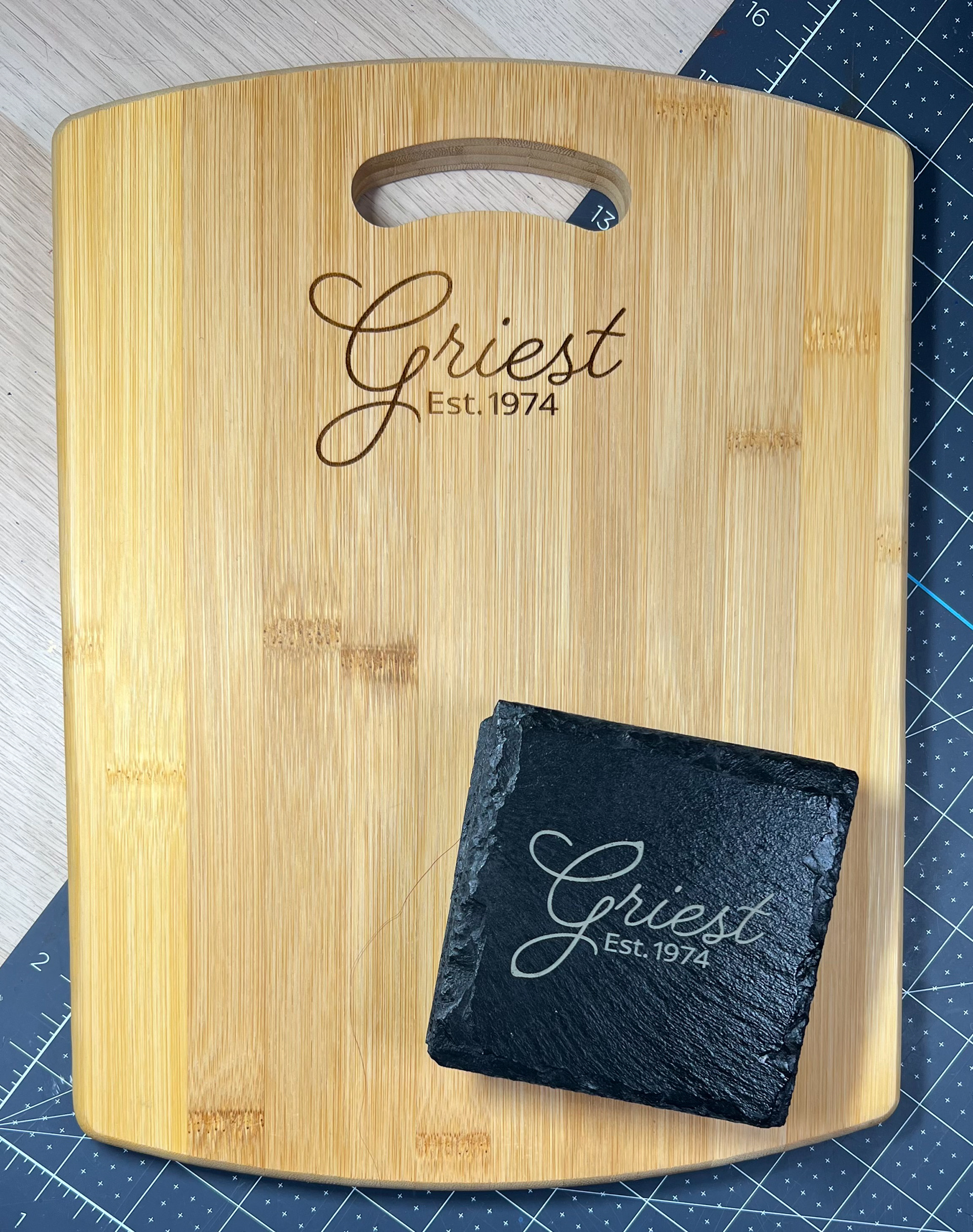 Custom projects have included photo engravings, slate coasters, engraved cutting boards, logo keychains, engraved glassware, celebratory plaques, custom holiday ornaments, awards and many more.